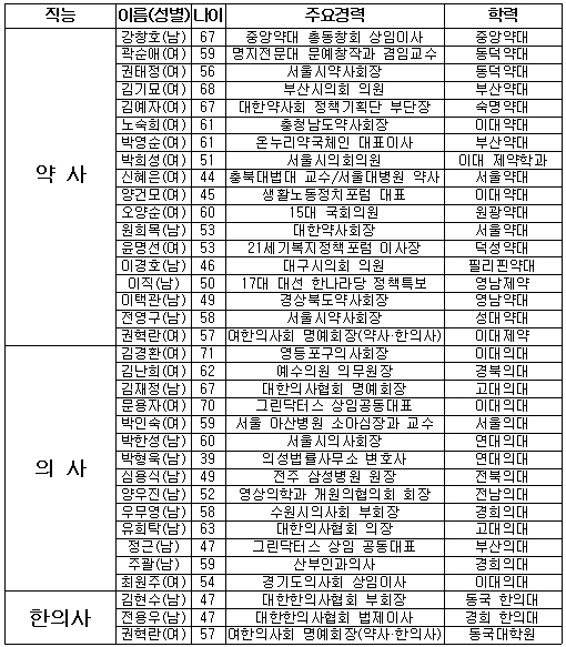 여당 비례대표 지원 의사-15명, 약사-18명