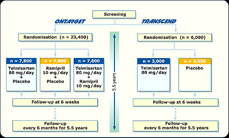 ‘온타깃’의 목적은 ‘텔미사르탄’과 ‘라미프릴’ 병용요법이 고위험군 환자의 사망, 심근경색, 뇌졸중, 심부전 및 심혈관 사망을 감소시키는 데 있어 ‘라미프릴’ 단독요법보다 더 효과적인지를 알아보는 데 있다.