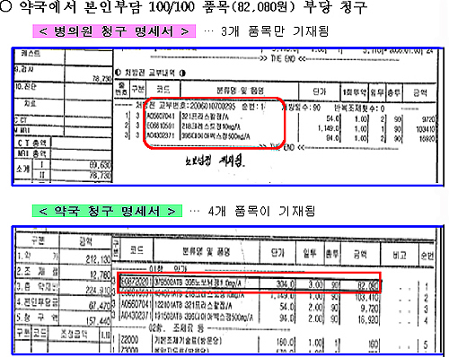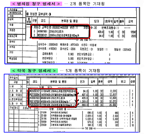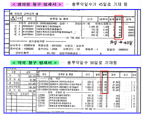 유형별로는 A의료기관은 실제 총투약일수가 90일임에도 불구하고 청구명세서 상에는 45일로 기재해 약제비 9만1510원을 축소청구한 사실이 확인됐다.