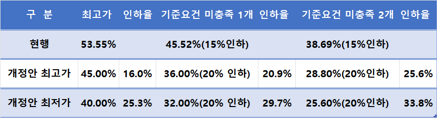 개편 약가제도에서 최고가 요건 미충족시 적용되는 인하율은 15%에서 20%로 확대된다.