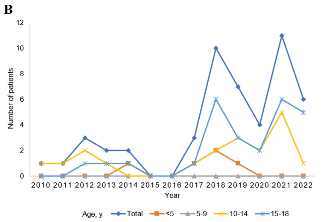 지난해 '소아 응급의학 저널'에 소개된 '한국의 소아 아세트아미노펜 중독:특성과 예후' 논문에서도 2009년부터 2022년까지 부산 국립대학 어린이병원 응급실을 방문한 13만2691명 중 555명(0.4%)이 중독을 경험, 이 환자들 중 51명(9.2%)은 아세트아미노펜 과다복용 환자로 등록됐다"며 "2010년부터 2022년까지 아세트아미노펜 중독 진단을 받은 환자 수는 시간이 지남에 따라 현저히 증가했다"고 소개됐다.