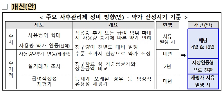 - 2027년부터 사용량-약가연동 등 실시 주기 개편