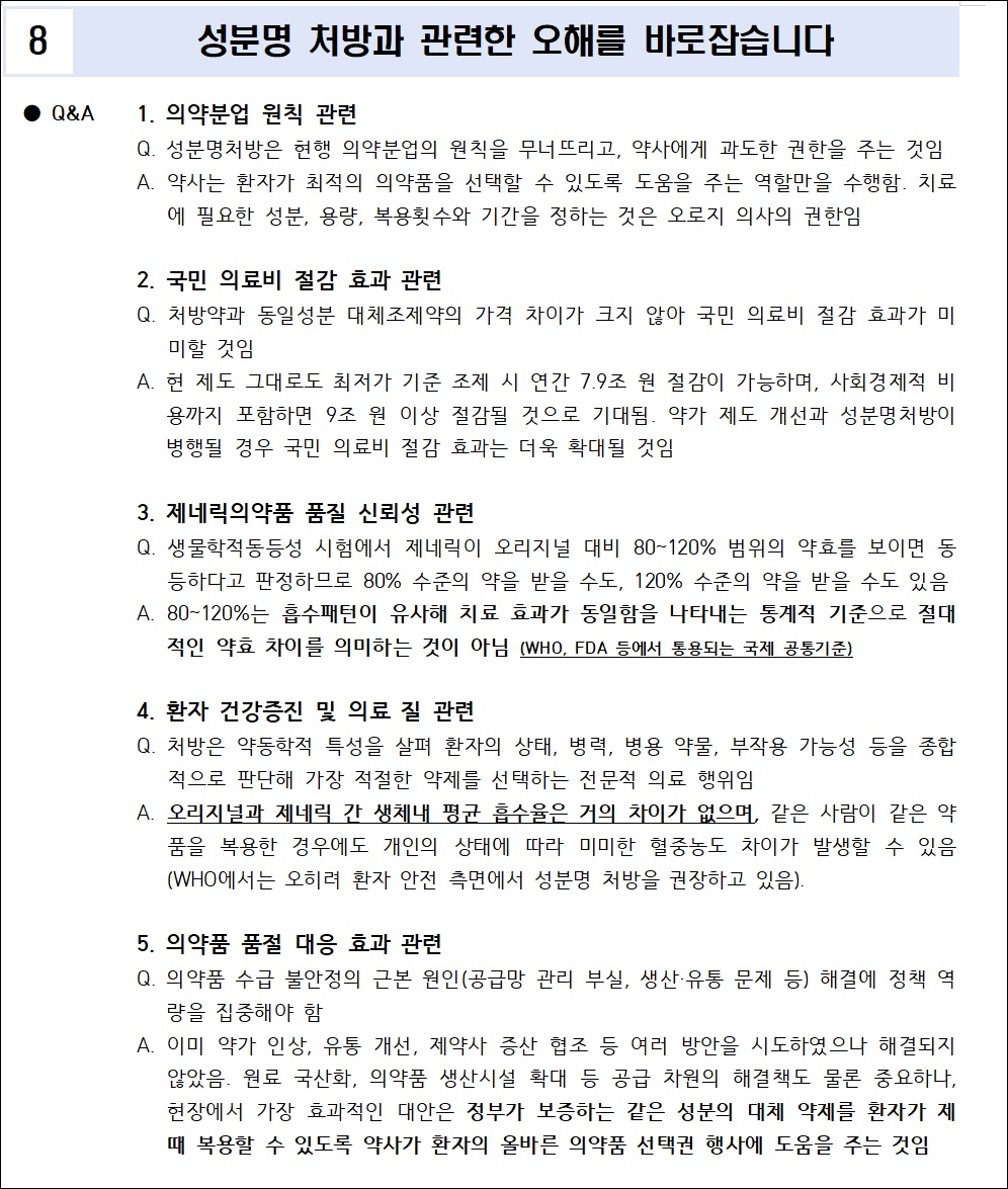 이번 자료집에는 특히 성분명처방 제도와 관련해 일각에서 제기하는 문제점이나 의문 사항 등에 대한 약사회 입장을 밝힌 내용이 담겨 눈길을 끌었다.