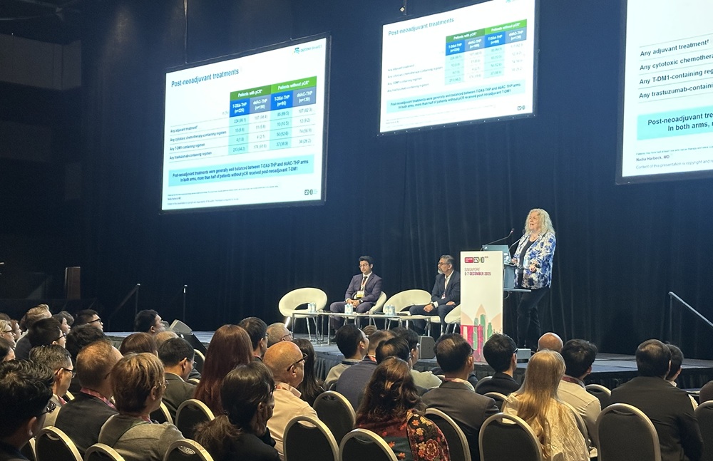 8일 관련 업계에 따르면 최근 싱가포르에서 개최된 유럽종양학회 연례학술대회 아시아(ESMO ASIA 2025)에서 '엔허투(트라스투주맙데룩스테칸)'와 '퍼제타(퍼투주맙)' 병용요법의 임상 결과가 공개됐다.
