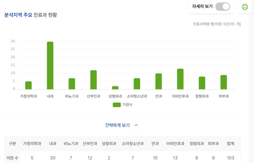 - 내과 30곳 압도적…이비인후과 13곳, 산부인과 12곳 순
