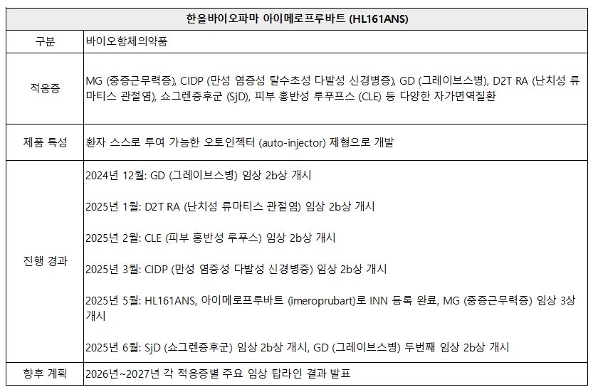 업계 관계자는 “FcRn 억제제 시장에서 이미 상업화된 경쟁 약물이 존재하는 상황에서, 이뮤노반트가 차세대 후보물질인 아이메로프루바트에 개발 역량을 집중하는 전략”이라며 “그레이브스병 임상 2b상에 아시아를 포함한 것은 글로벌 허가와 상업화를 염두에 둔 포석으로, 향후 임상 데이터가 긍정적으로 도출될 경우 한올바이오파마의 기술가치 재평가로 이어질 가능성이 크다”고 말했다.