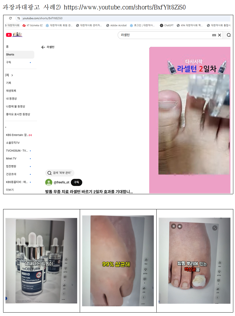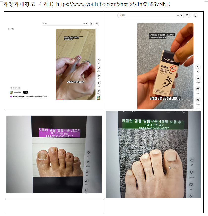 약본부에 따르면 해당 제품 판매 회사는 화장품, 헤어제품, 의약외품 등을 생산하는 업체로, 현재 유튜브 등 SNS을 통해 ‘라셀턴 앰플 발톱무좀 치료전’이나 ‘라셀턴 앰플 발톱무좀 사용 후기’ 등의 내용을 광고하고 있다.
