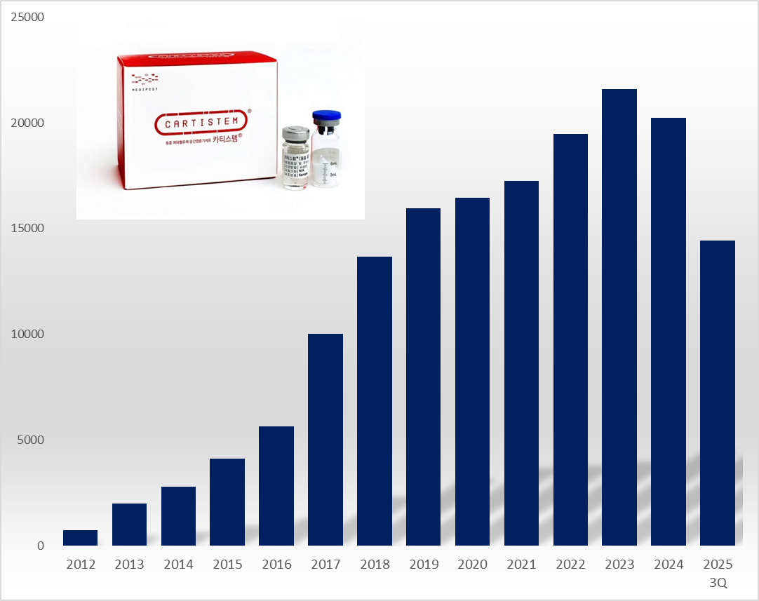 카티스템은 국내 개발 줄기세포치료제 중 유일하게 상업적 성과를 내고 있는 제품으로 평가받는다.