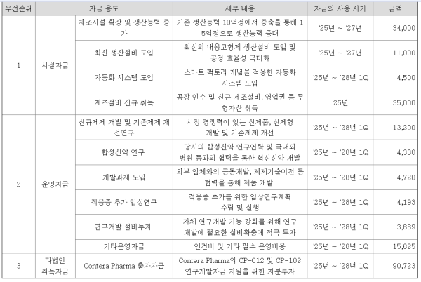 - 작년 유상증자 조달 자금 중 신규 제조시설 취득에 350억 배정