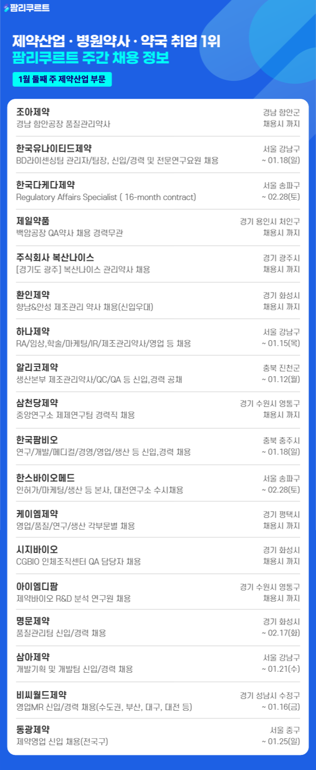 [팜리쿠르트] 조아제약·유나이티드·다케다 등 부문별 채용