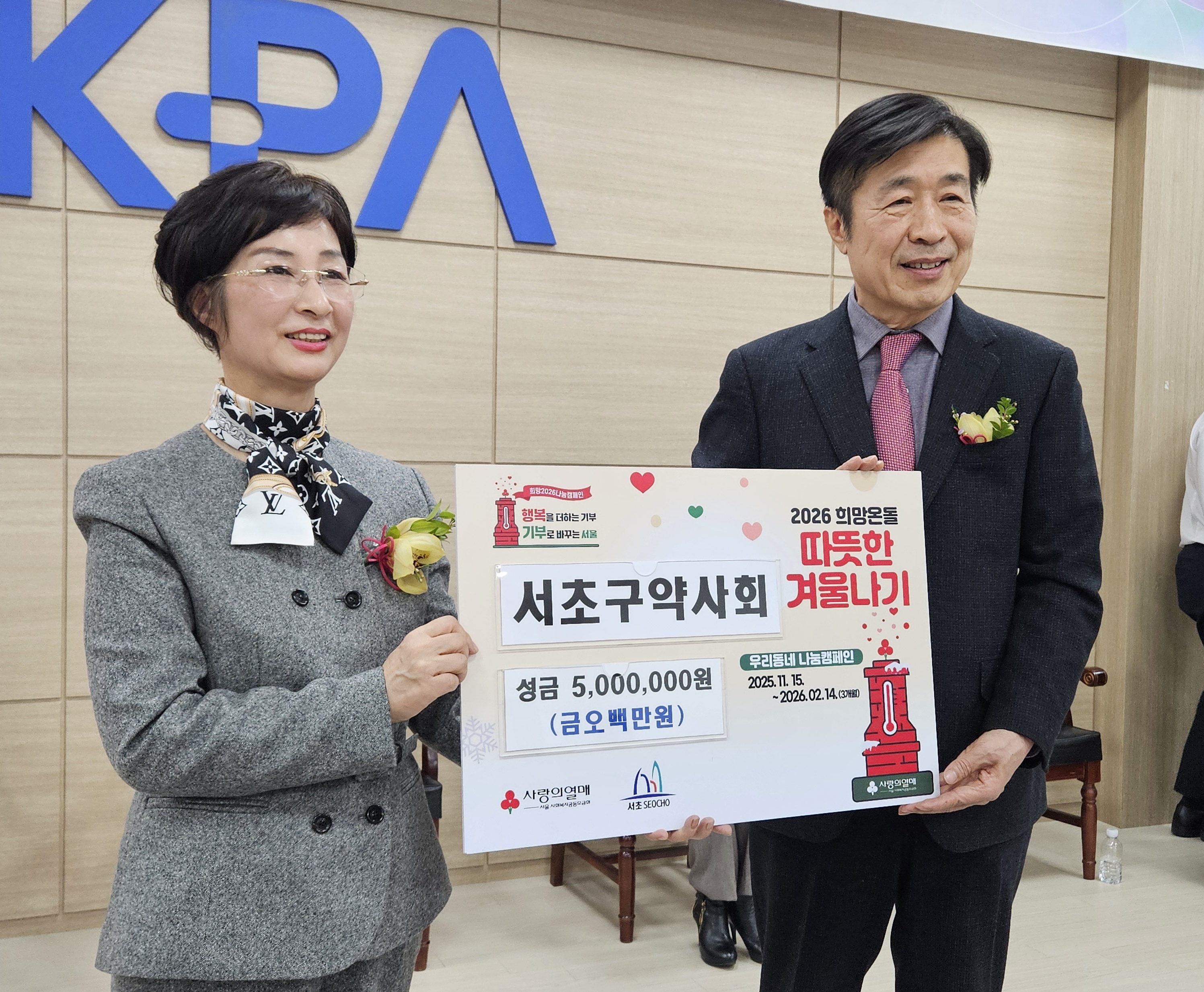 구약사회는 이날 회원 약사들이 모금한 성금 500만원을 어려운 이웃돕기에 쓰일 수 있도록 전성수 서초구청장에게 전달하는 시간도 가졌다.