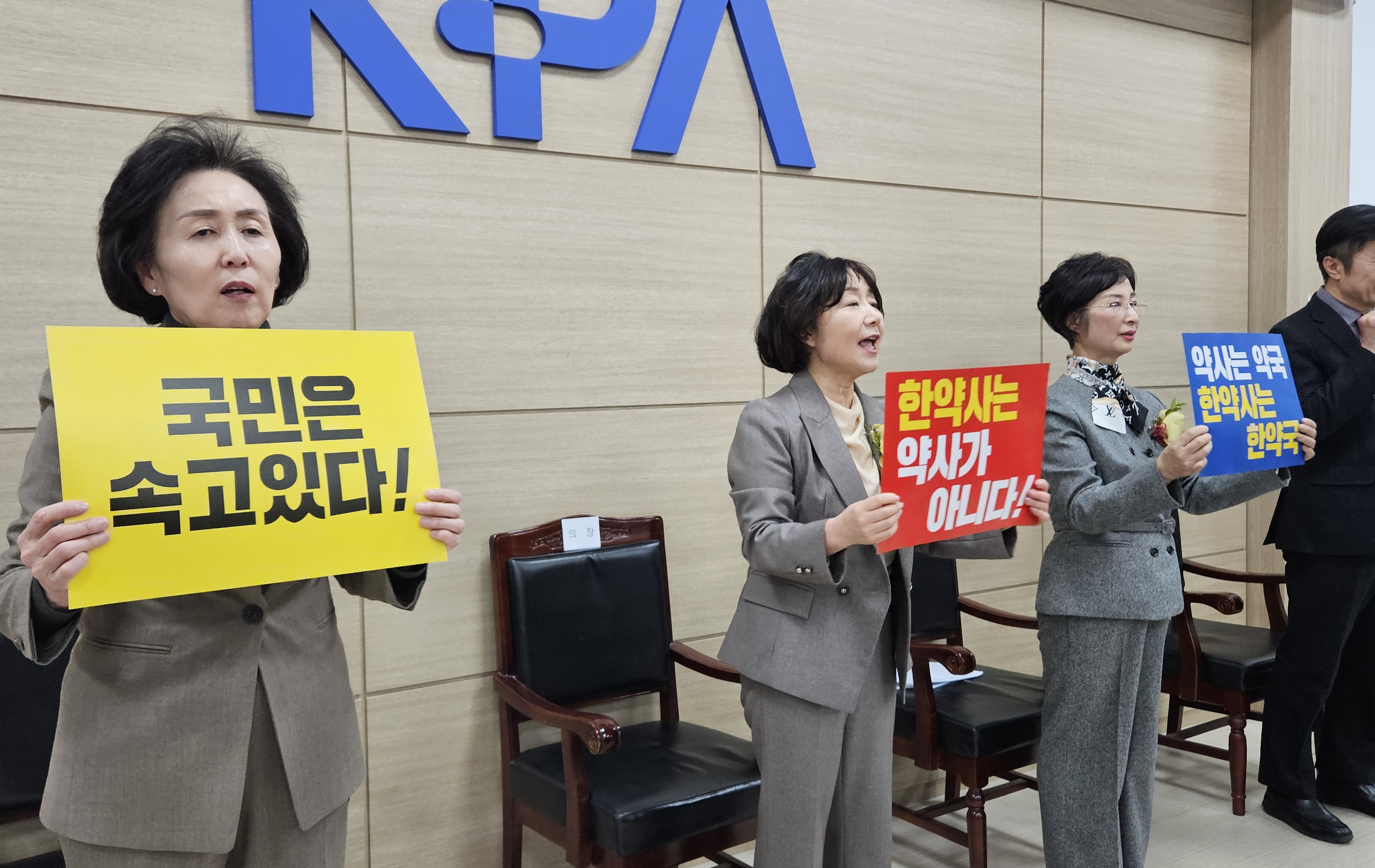 신 부회장은 “국민 알권리는 철저히 무시당하고 있다”면서 “정부와 국회에 강력 촉구한다. 한약사의 면허 밖 일반약 판매를 즉각 처버라고, 한약사의 약사 고용 처방조제 금지 법안을 즉각 통과시켜달라”고 요구했다.