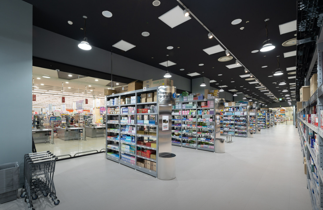 창고형 약국 입점이 추진·논의되고 있는 점포는 광주 상무점과 경남 창원중앙점 2곳이다.