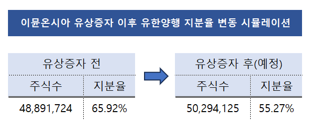 이에 따라 유상증자 후 이뮨온시아에 대한 유한양행 지분율은 55%로 10%포인트 이상 낮아질 전망입니다. 9일 종가 8800원을 기준으로 하면 유상증자 이후 유한양행이 보유하게 될 이뮨온시아 지분 가치는 약 4400억원으로 추산됩니다. 지분율 하락을 감안하면 유한양행의 이뮨온시아 지배력 기준 지분 가치는 800억원 안팎 줄어드는 것입니다.