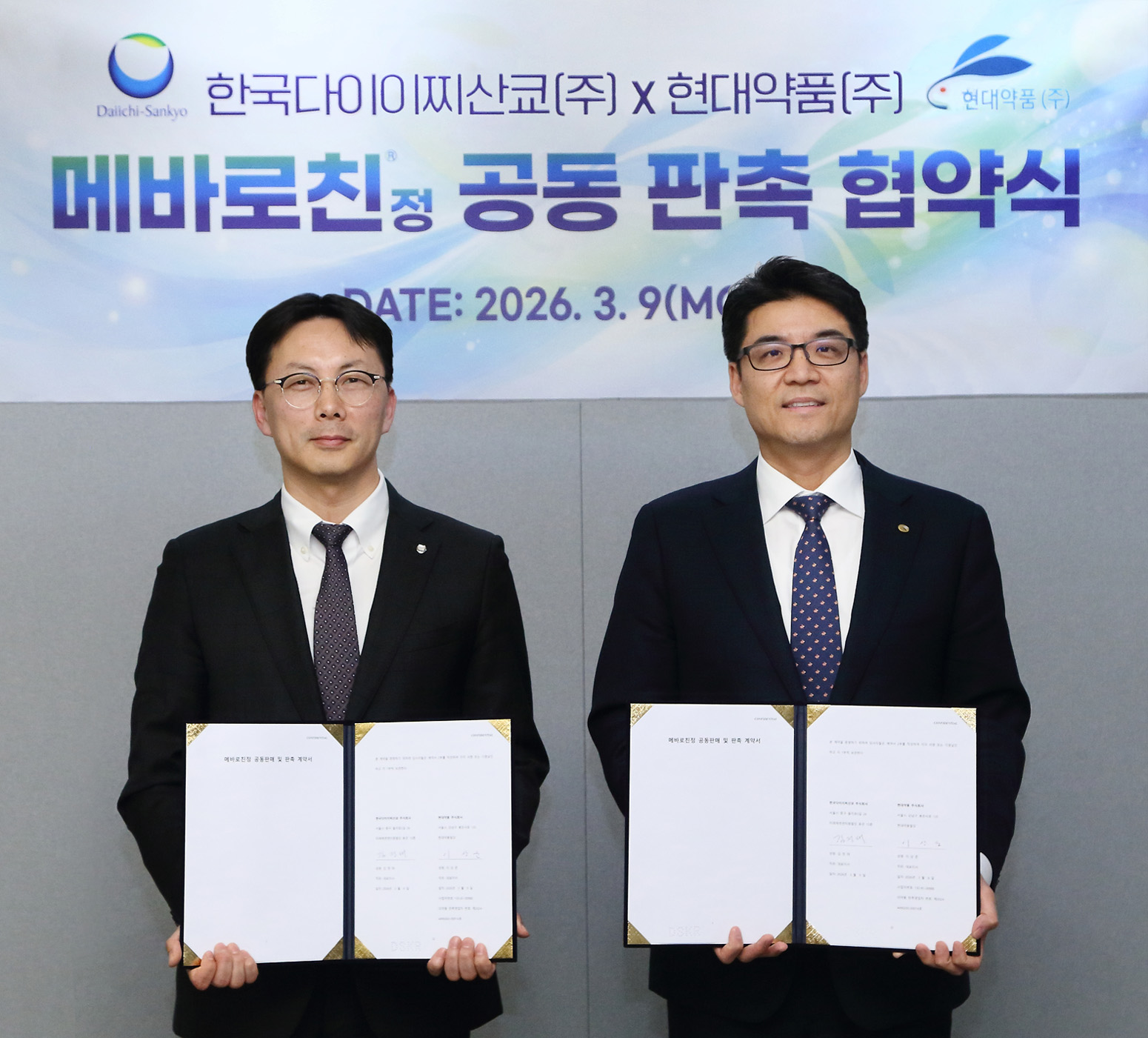 한국다이이찌산쿄 김정태 대표이사는 “메바로친은 장기간 축적된 임상 데이터와 안전성 프로파일을 바탕으로 국내 이상지질혈증 치료 분야에서 꾸준히 선택돼 온 제품”이라며 “병·의원 네트워크와 학술 마케팅 역량을 갖춘 현대약품과 협력해 의료진 대상 정보 제공을 강화하고 제품 접점을 확대해 나가겠다”고 밝혔다.