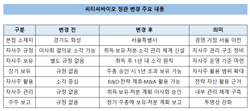 씨티씨바이오, 자사주 M&A·R&D 활용…본점 서울 이전