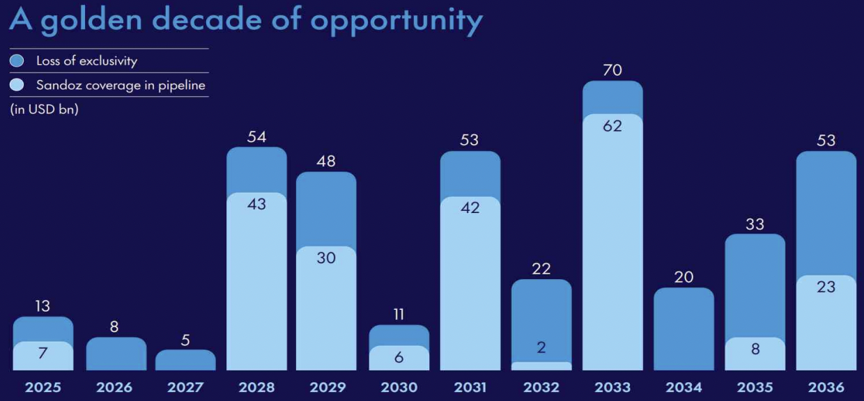 산도즈 리처드 세이너 CEO는 올해 1월 JP모건 헬스케어 컨퍼런스에서 앞으로의 10년을 바이오시밀러 산업의 ‘골든 디케이드(golden decade)’, 즉 시장 확대의 황금기로 평가한 바 있다. 그는 향후 10년간 전례 없는 블록버스터 바이오의약품의 특허 만료와 시장 독점권 상실이 잇따를 것으로 전망했다.