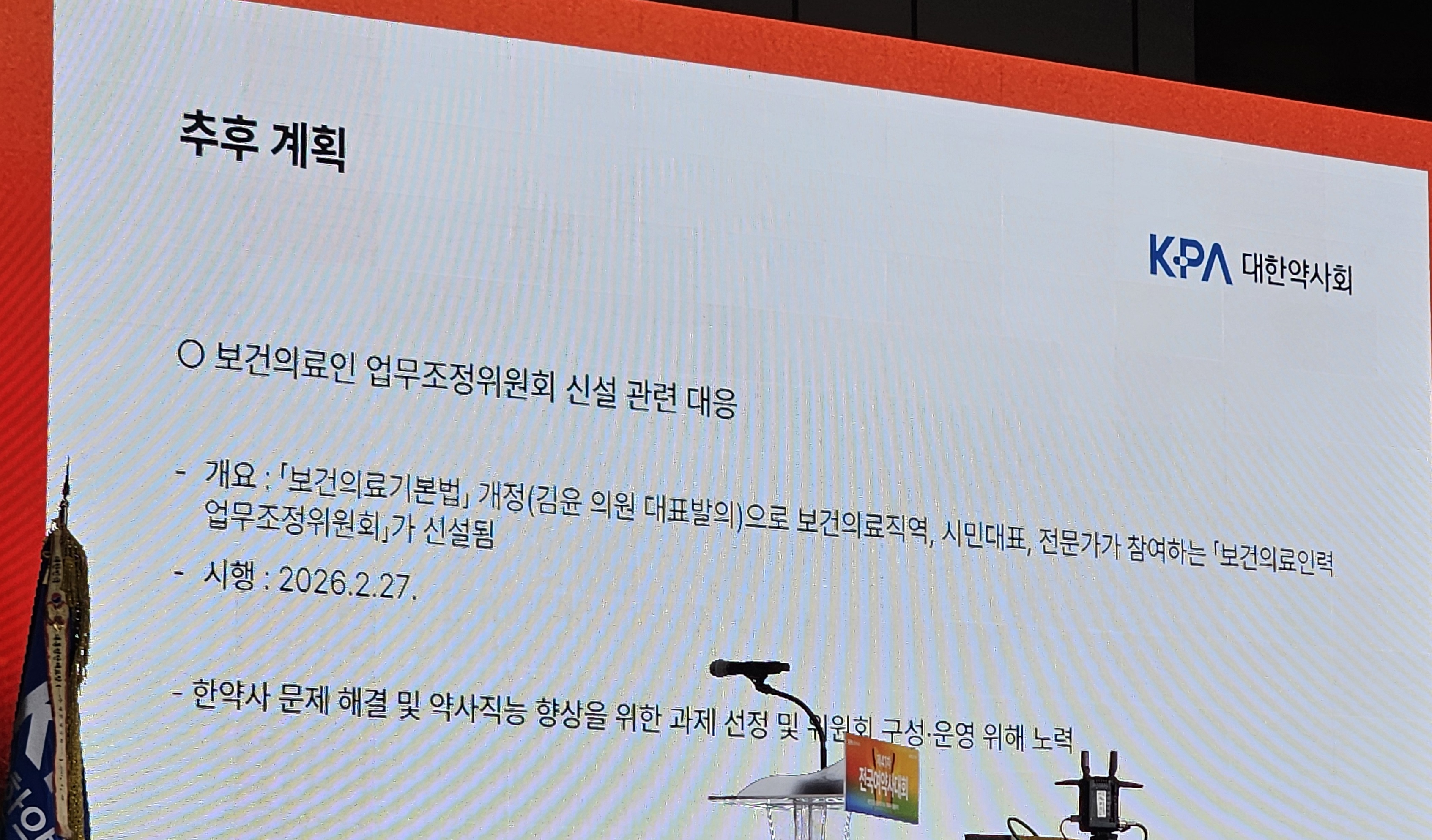 [데일리팜=김지은 기자] 대한약사회가 내달 본격 가동되는 보건의료인력 업무조정위원회를 한약사 문제 해결의 핵심 창구로 활용하겠다는 전략을 공식화했다. 직역 간 갈등을 정부 주도 논의 테이블로 끌어올리겠다는 점에서 향후 논의 결과에 관심이 쏠린다.