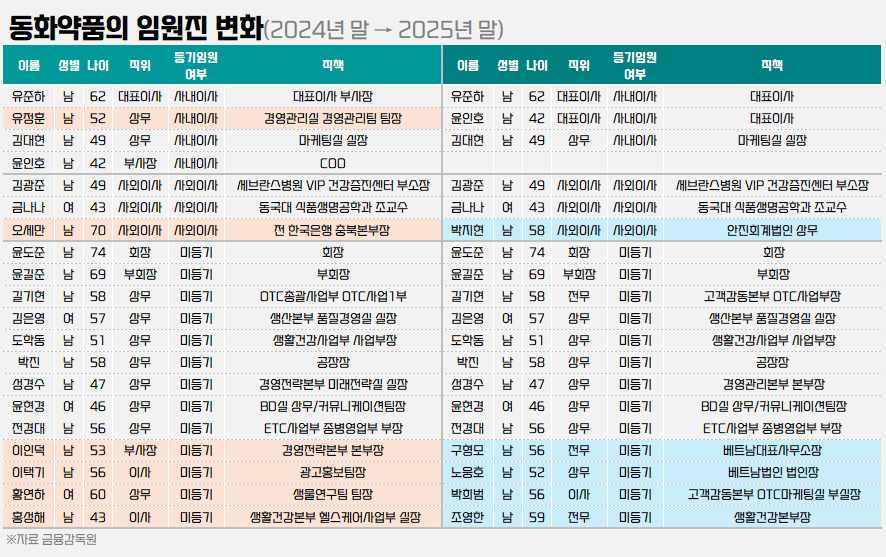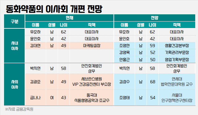 - 6임원 30% 교체·이사회 개편…동화약품, 4세 경영 새판짜기
