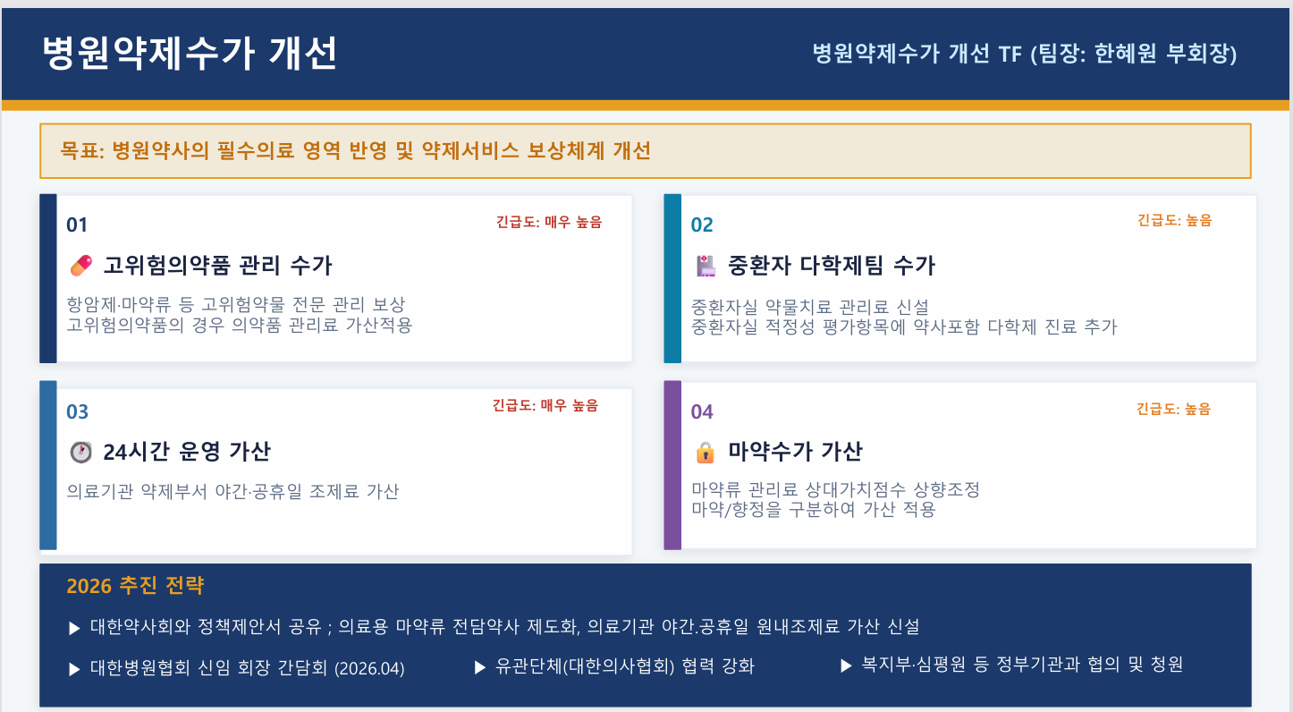 - 병원약사회, 2026년 핵심 과제로 ‘수가 개선’ 최우선 설정