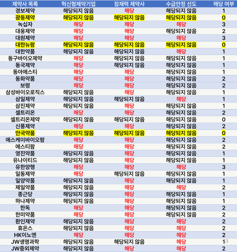 - 매출 2천억 초과 제약사 중 2~3곳만 우대 미적용 예상