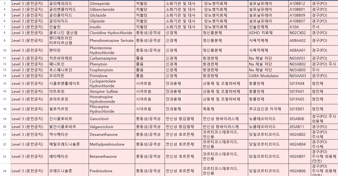 특히 논란이 되는 약물이 Level 3에 해당하는 인슐린과 Level 1에 해당하는 콘서타 성분의 메틸페니데이트 등이다.