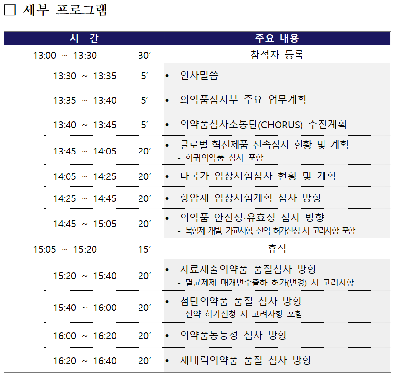 발표 자료는 설명회 종료 후 ‘식약처 대표 누리집(www.mfds.go.kr) > 자료실’에 공개할 예정이다.