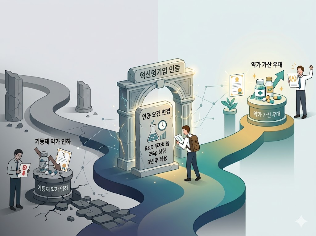 9일 업계에 따르면 혁신형 제약기업 인증 여부는 약가제도 개편의 희비를 가르는 기준이 됐다. 동일한 제도 변화를 맞이했지만 기등재 인하와 약가 가산 우대 등에 따라 사실상 다른 성적표를 받아들었기 때문이다.