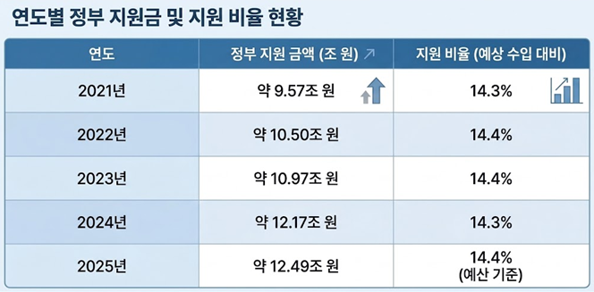 아울러 재정경제부를 비롯한 정부는 건보재정 법정 지원 기준인 '당해연도 보험료 예상 수입액의 20%'를 해마다 지키지 않고 14% 수준의 지원율을 반복중인 점도 비판 대상이다.