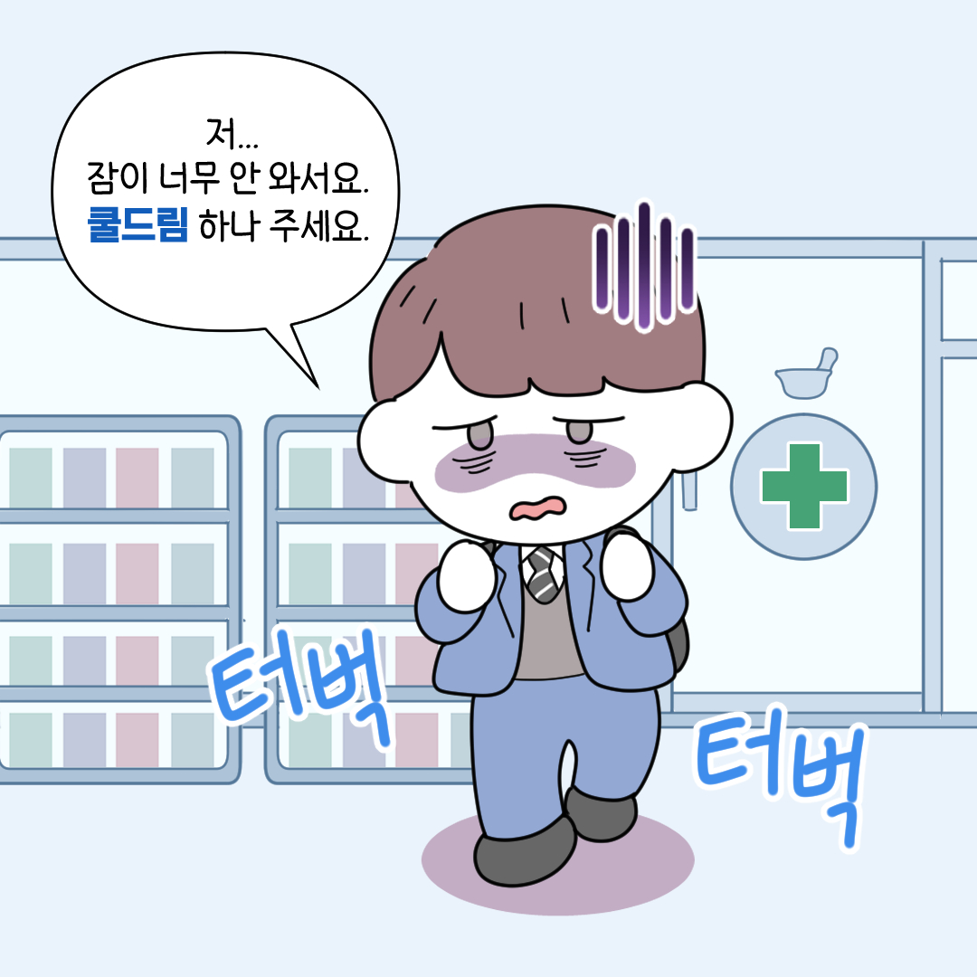 약사: 쿨드림은 '디펜히드라민'을 유효성분으로 하는 수면유도제예요. 청소년이 과다 복용하면, 섬망, 환각, 인지기능 저하 같은 무서운 부작용이 생길 수 있어요.