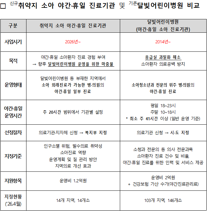 취약지에 야간·휴일 진료 경험을 부여해 향후 달빛어린이병원을 운영할 수 있는 마중물을 지원하고 소아 의료 인프라 부족 지역의 진료 공백을 완화하기 위해서다.
