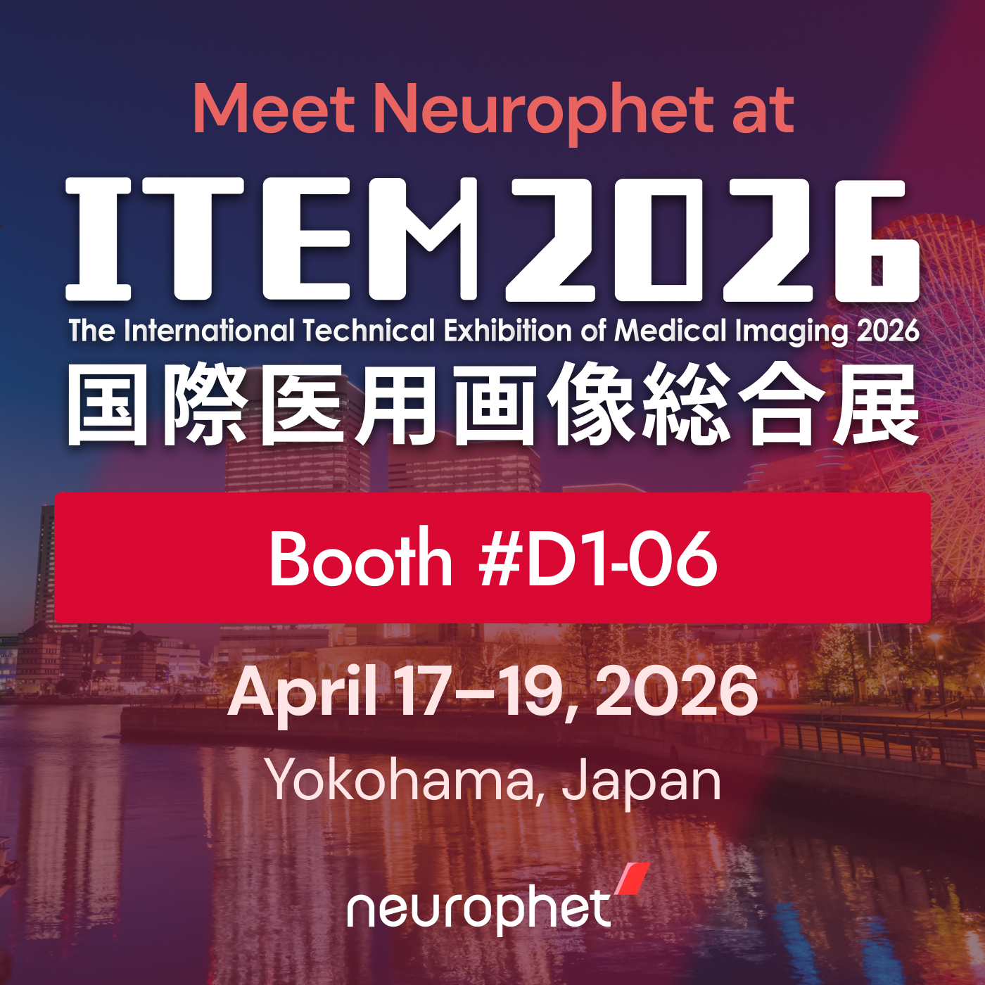[데일리팜=황병우 기자]뉴로핏은 17일부터 19일까지 일본 요코하마에서 열리는 국제의료영상기술전시회 'International Technical Exhibition of Medical Imaging 2026(ITEM 2026)'에 참가한다고 14일 밝혔다.