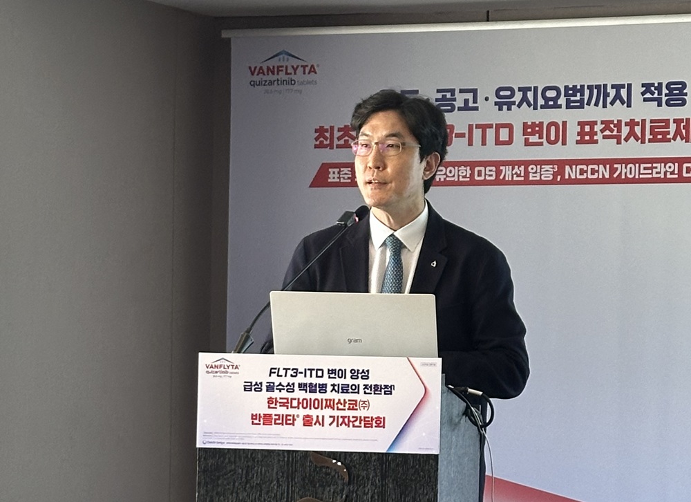 조병식 서울성모병원 혈액내과 교수는 "FLT3 표적치료제 도입 이후 치료 성과는 개선됐지만, 기존 FLT3 저해제와 항암화학요법 병용 시에도 약 40% 수준의 재발률이 보고된다"며 "특히 FLT3-ITD 양성 환자에서는 예후 개선을 위한 새로운 치료 옵션에 대한 미충족 수요가 컸다"라고 설명했다.