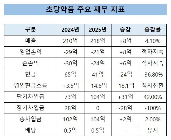 [데일리팜=이석준 기자] 초당약품공업이 현금 감소와 차입 구조 단기화가 동시에 나타난 가운데 적자에도 배당을 이어갔다. 외형은 유지됐지만 재무 구조는 단기 부담 중심으로 재편됐다.
