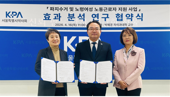 [데일리팜=김지은 기자] 서울특별시약사회(회장 김위학) 여약사위원회(부회장 김영진, 위원장 김채윤)는 16일 파지수거 노령 여성 노동 근로자 지원사업의 효과 분석과 정책 제언을 위한 연구용역 협약식을 체결했다고 밝혔다.