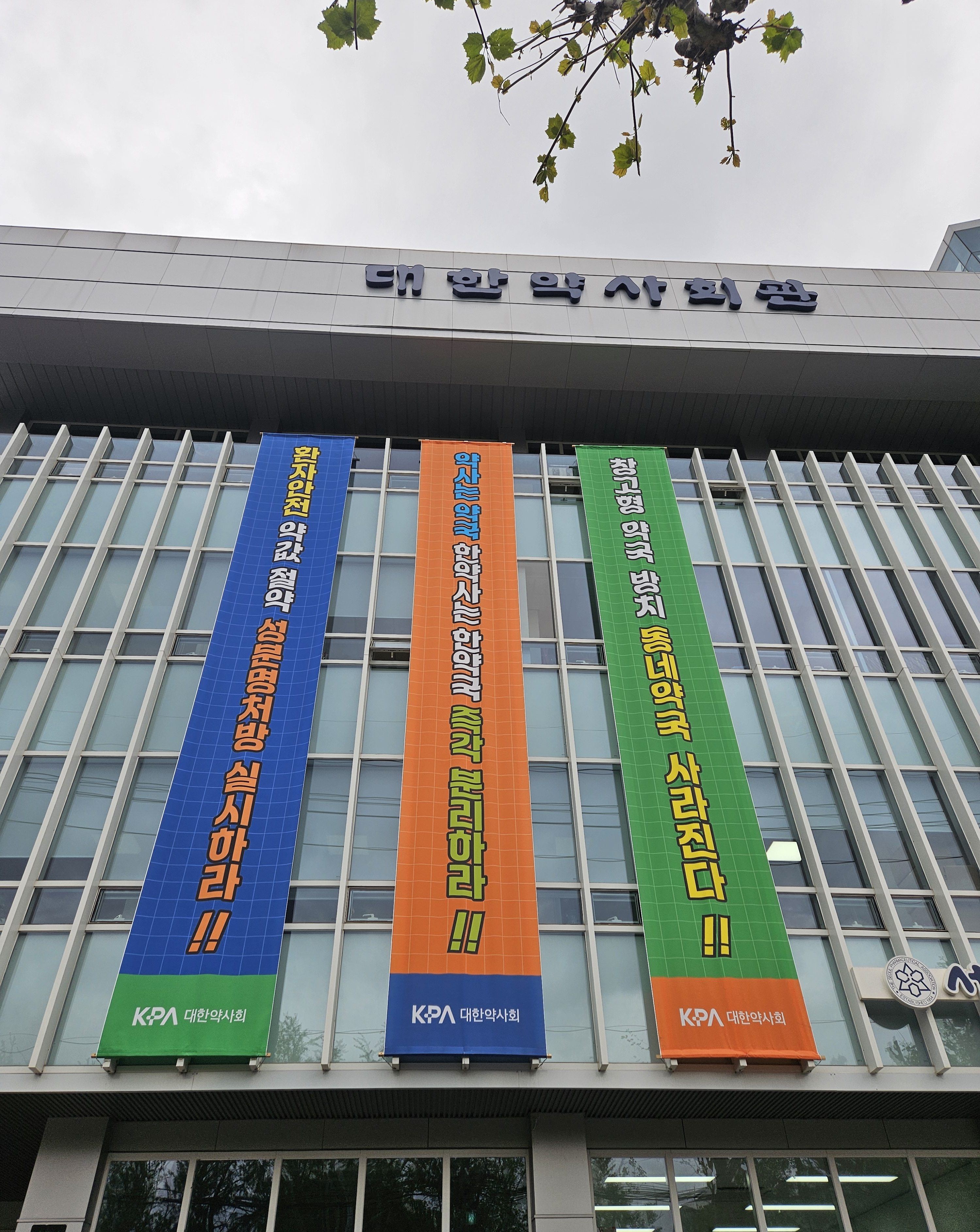 이와 함께 대한약사회관 외벽에는 성분명처방, 한약사 문제, 창고형약국 대응 등 주요 현안을 담은 현수막을 설치했으며, 관련해 제작 중인 포스터를 회원 약국에 전달할 방침이다.