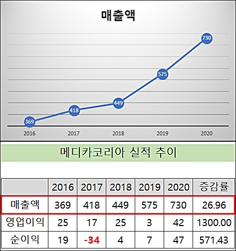 메디카코리아는 2016년 프로톡스에 인수됐다. 2016년(369억원)과 2020년(730억원) 매출액을 비교하면 4년새 2배 성장이다. M&A 후 사업이 궤도에 올랐다는 분석이다.