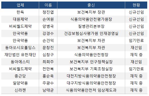 - 올해 주총서 사외이사 신규선임 예고…복지부·식약처 출신 영입 확대
