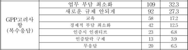 또 가이드라인과 종업원 업무 규정이 필요하다고 생각할수록 GPP선호도가 높았다.