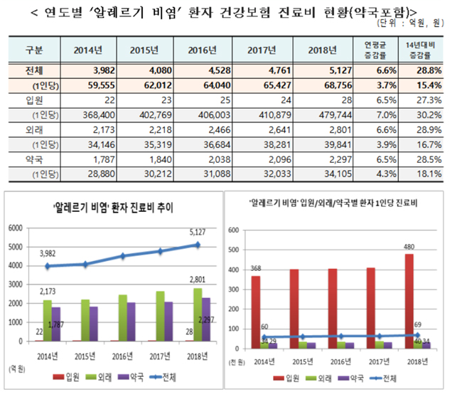 - 총진료비 2014년 3982억→2018년 5127억으로 증가