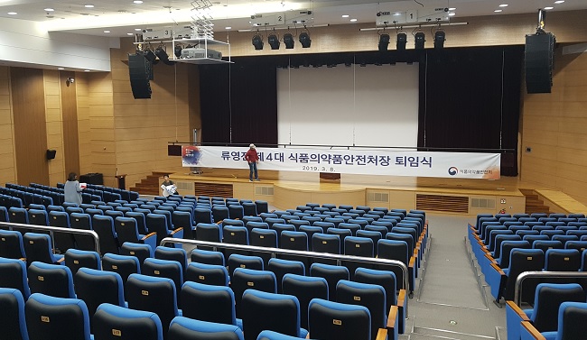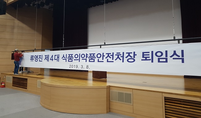 류영진 식품의약품안전처장의 퇴임식이 잠시 후 4시 30분부터 진행될 예정이다. 행사에 앞서 식약처 직원들이 퇴임식 준비에 한창이다.