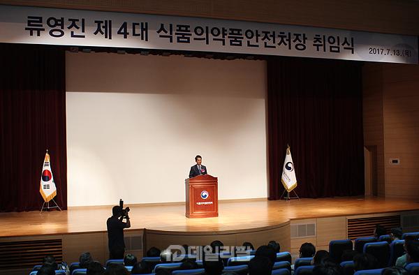 아래는 지난 2017년 7월 12일 류 처장의 취임식 당시 모습.