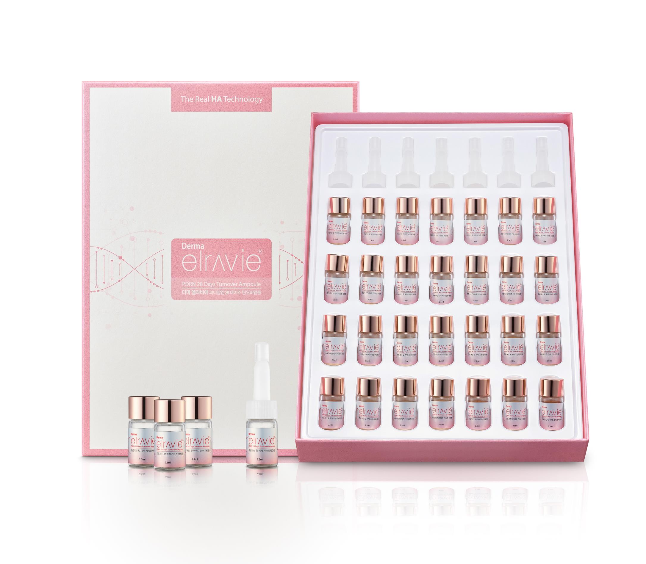 ‘더마 엘라비에 PDRN 28 데이즈 턴오버 앰플’은 PDRN에 고순도 히알루론산과 성장인자 3종(EGF, IGF, FGF)을 배합해 피부 본연의 힘을 키워주고 피부 재생 주기를 활성화함으로써, 노화와 외부환경으로 약해지고 늘어진 피부를 건강하게 가꿔주는 주름 개선 및 미백 기능성 앰플이다.