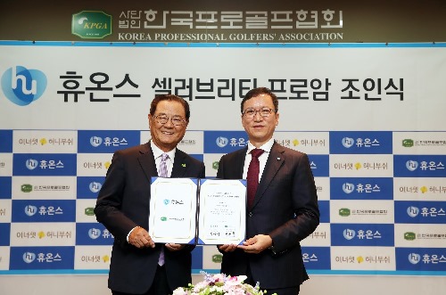 휴온스글로벌(대표 윤성태·김완섭)의 자회사 휴온스(대표 엄기안)는 4일 경기도 성남시에 위치한 KPGA 본사에서, 휴온스글로벌 윤성태 부회장과 한국프로골프협회(KPGA) 양휘부 회장등 관계자가 참석한 가운데 ‘휴온스 셀러브리티 프로암’ 골프대회 개최 후원 협약을 체결했다고 밝혔다.