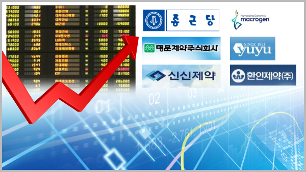 유유제약·신신제약·환인제약도 13%(1만 1100원→1만 2550원)·9%(8840원→9630원)·8%(1만 7750원→1만 9150원)대의 상승률을 기록했다.